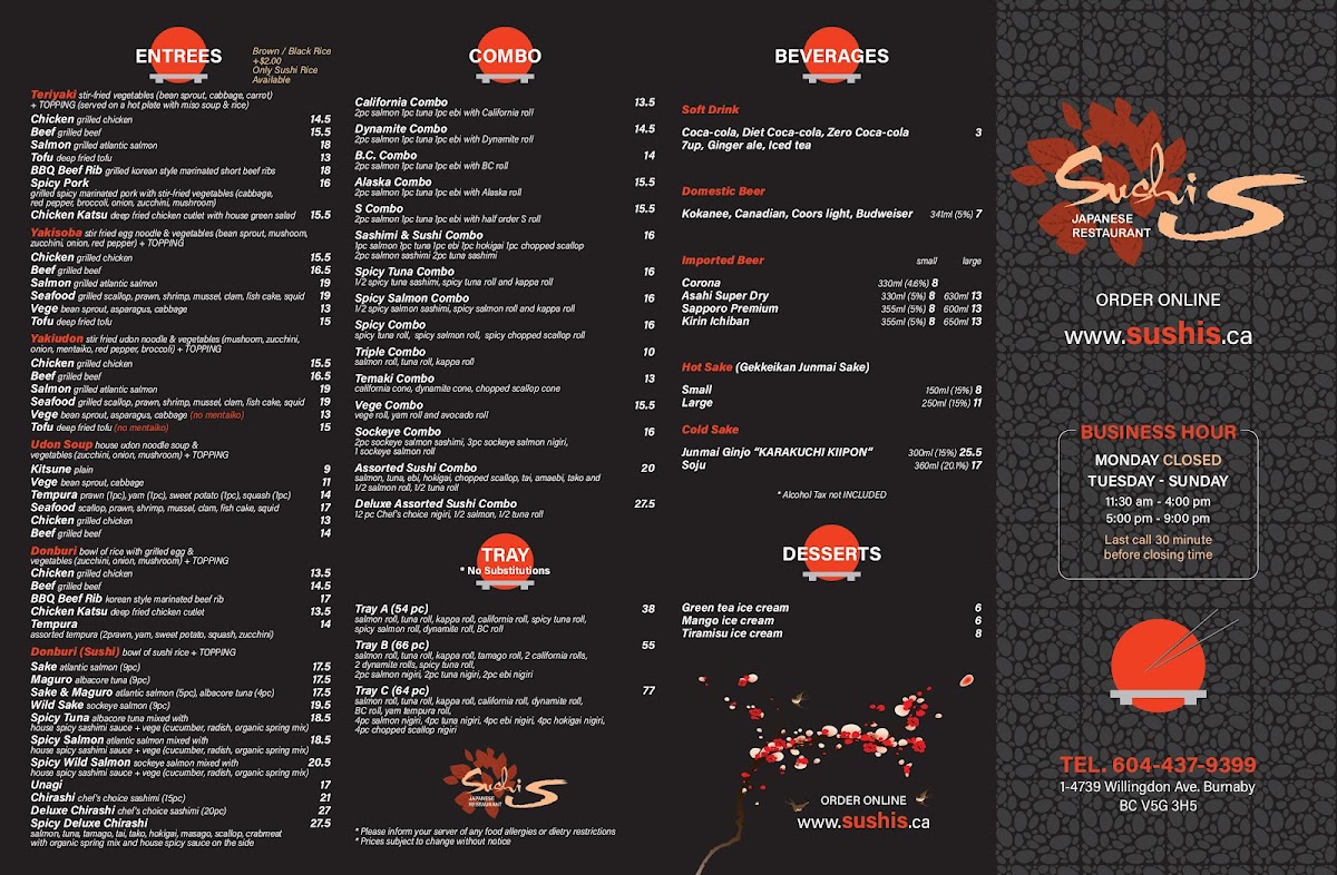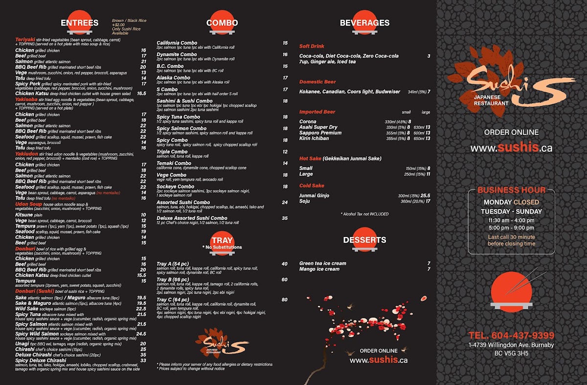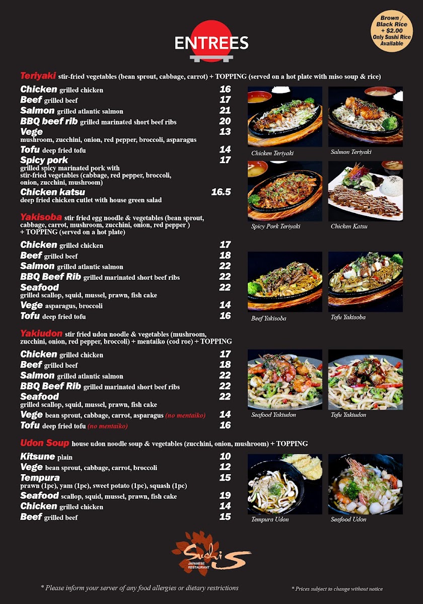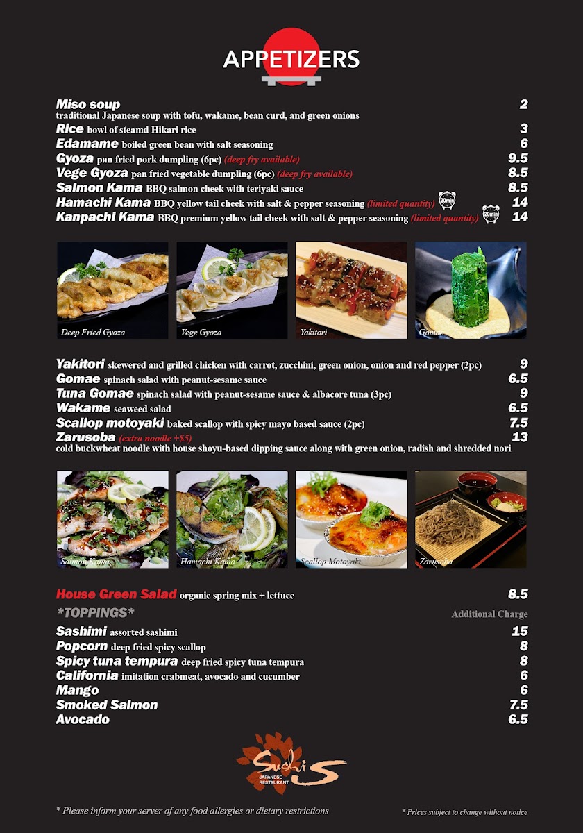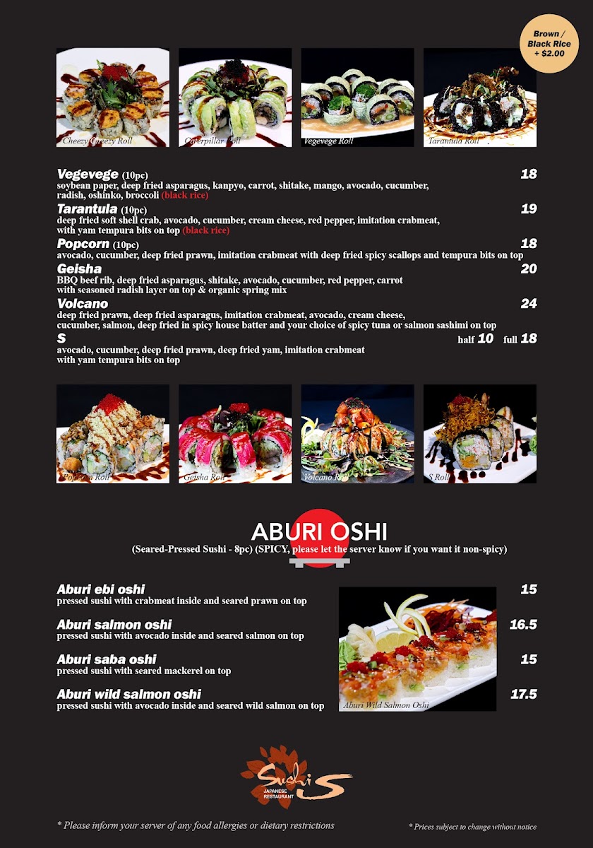 The menu at Sushi S Japanese Restaurant offers a thoughtful selection of classic and contemporary Japanese dishes presented with clean, simple elegance. It’s a place where you can easily enjoy comforting casual bites or a focused sushi experience without fuss, perfect for both quick lunches and relaxed dinners.